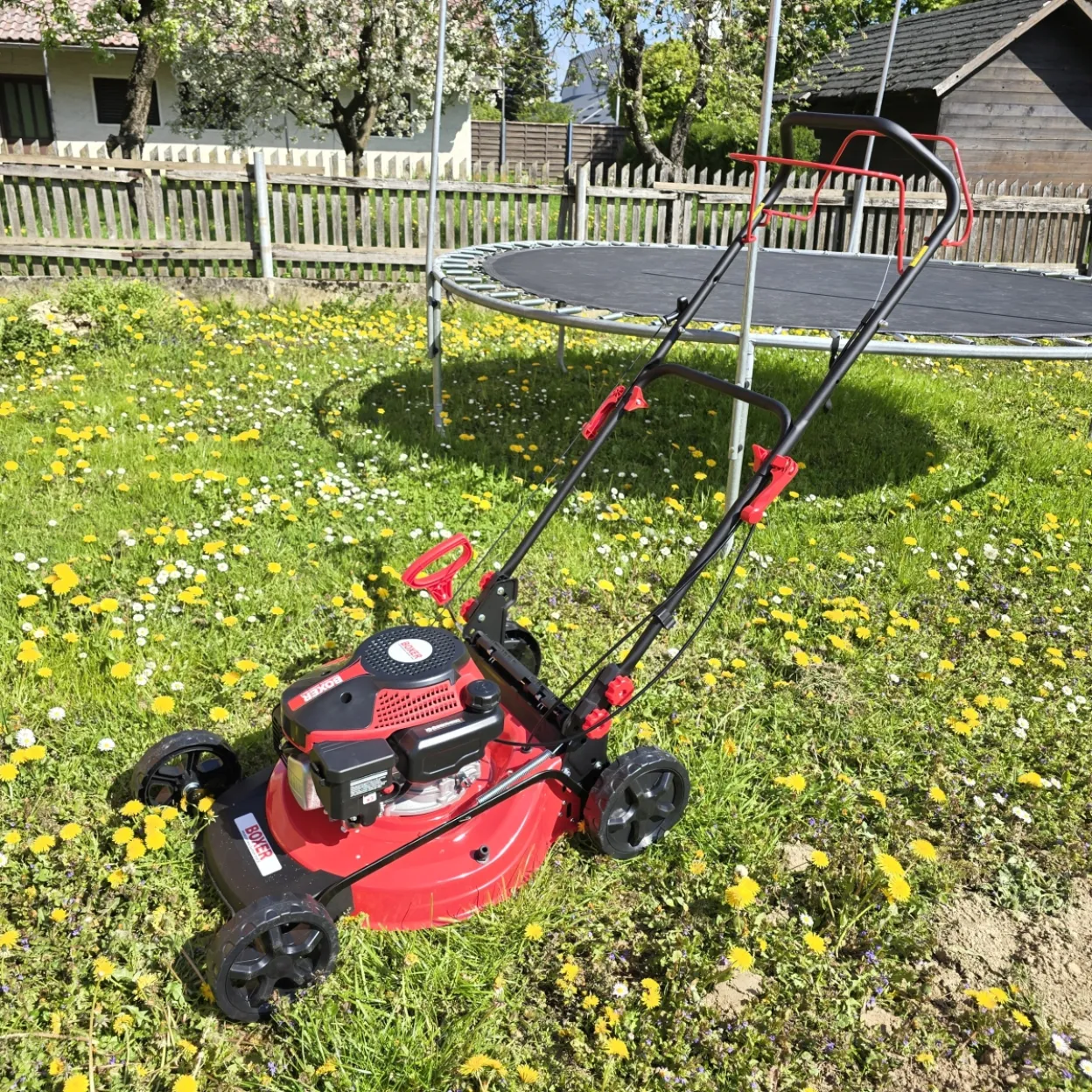 🌿🏁 Snaga, preciznost i udobnost u jednom! Boxer benzinska kosilica BX3260 s motorom od 4,3 konjske snage (KS) savršen je izbor za srednje i velike travnjake, zahvaljujući snažnom motoru i svestranim opcijama košnje.