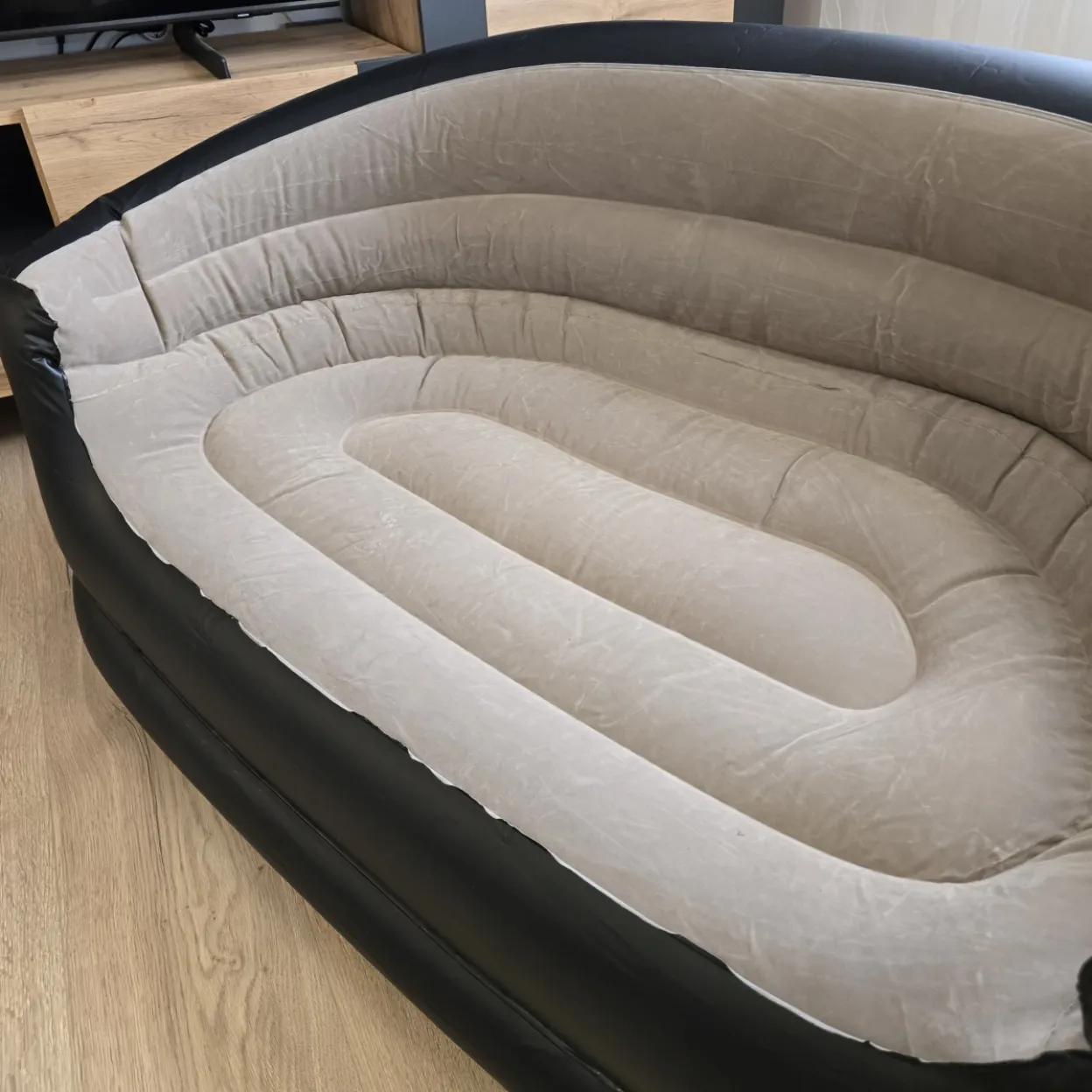 Dvosjed na napuhavanje G308 udoban je napuhavajući kauč namijenjen opuštanju kod kuće, u apartmanu, na balkonu ili terasi. Zahvaljujući ergonomskom obliku i širokom naslonu pruža odličnu potporu tijelu, što ga čini idealnim za čitanje, gledanje televizije ili odmor. Napuhavajuća konstrukcija omogućuje brzo postavljanje i jednostavno spremanje kada se ne koristi, dok uključena pumpa omogućuje brzo i jednostavno napuhavanje 🛋️✨.
