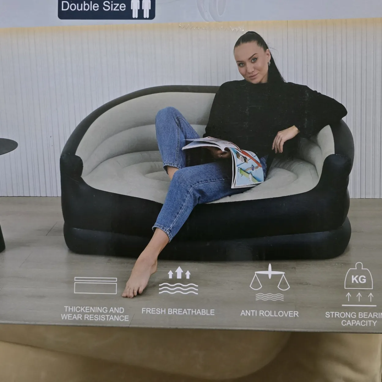 Dvosjed na napuhavanje donosi udobnost i praktičnost u vaš prostor, bilo da ga koristite za opuštanje kod kuće, na terasi, u vrtu ili čak na kampiranju. Njegov moderan dizajn i kvalitetna izrada osiguravaju dugotrajnu upotrebu i uživanje u svakom trenutku.
