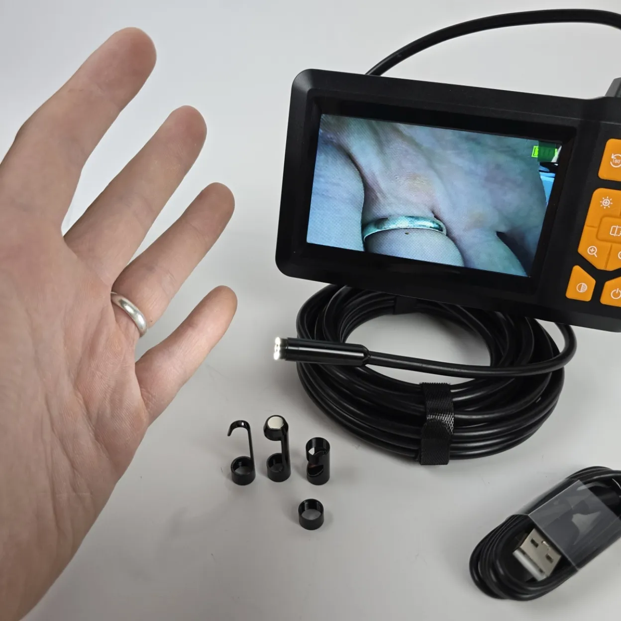 Endoskopska kamera s 4,3" HD zaslonom namijenjena je za vizualni pregled teško dostupnih mjesta poput odvoda, cijevi, motora, zidova i drugih uskih prostora – bez potrebe za spajanjem na mobitel ili računalo.
