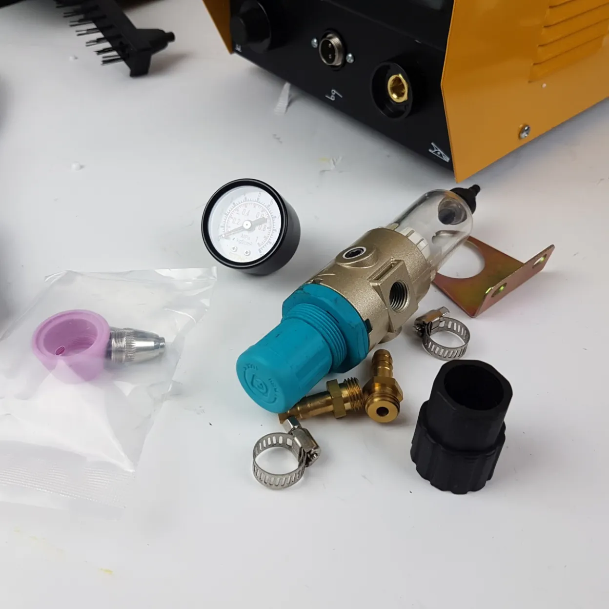 U kompletu dolazi sve potrebno za rad – plazma pištolj, masa, regulator tlaka i dodatna oprema, što znači da je uređaj odmah spreman za korištenje.