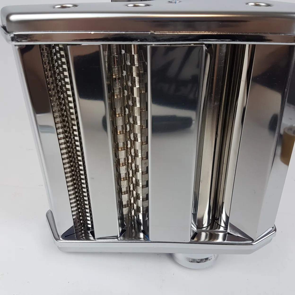 Opis proizvoda: Mašina za tijesto 039 je pouzdan i funkcionalan uređaj za izradu tijesta kod kuće. Izrađena je od visokokvalitetnog kromiranog inoxa što osigurava dugotrajnost i trajnost uređaja. Ova mašina dolazi s tri različita valjka koji omogućuju raznovrsne mogućnosti oblikovanja tijesta.