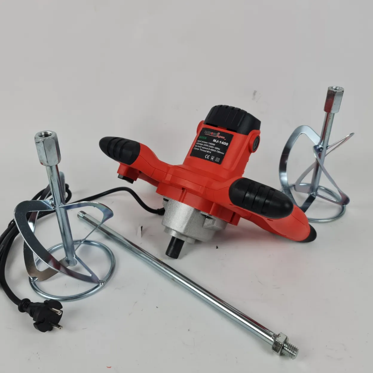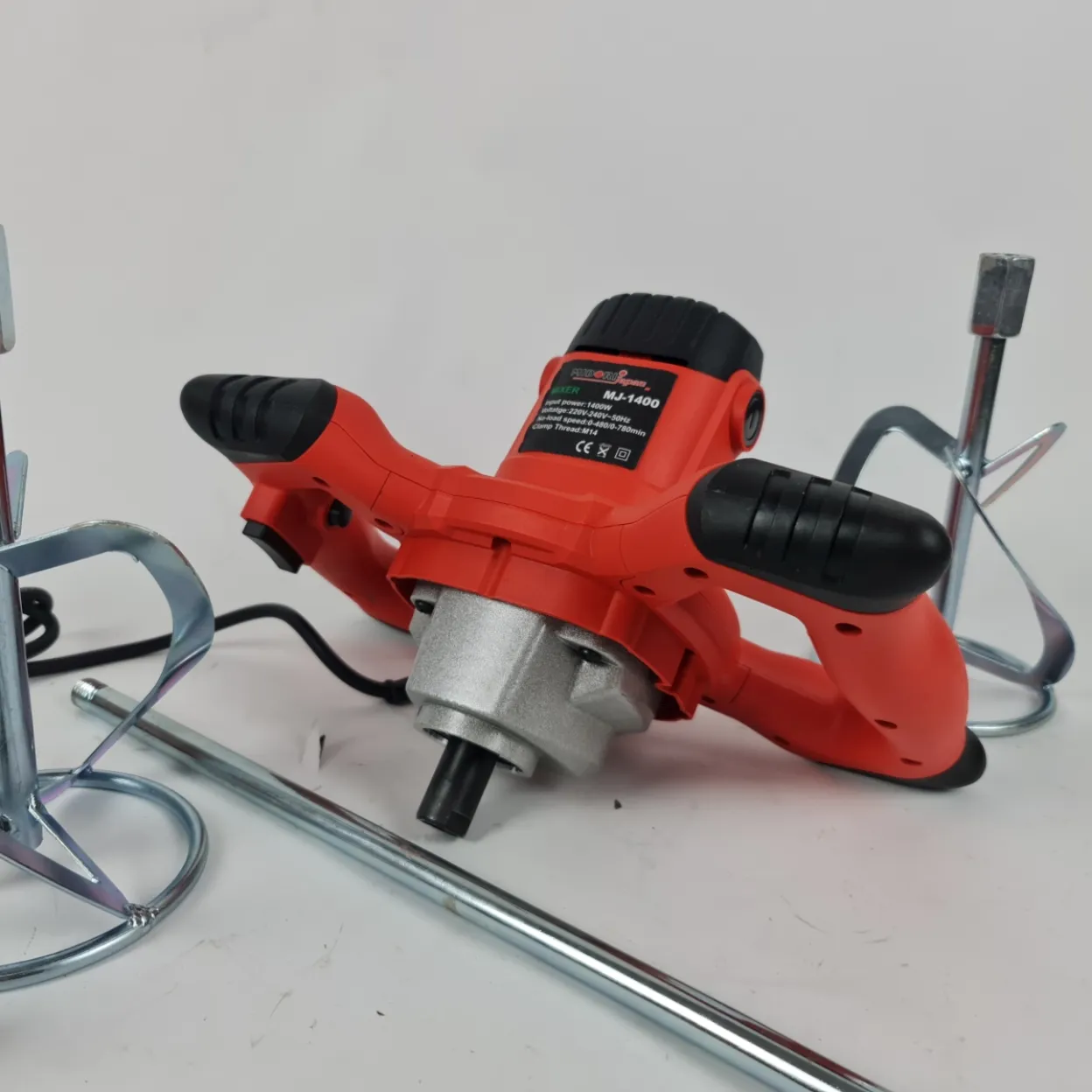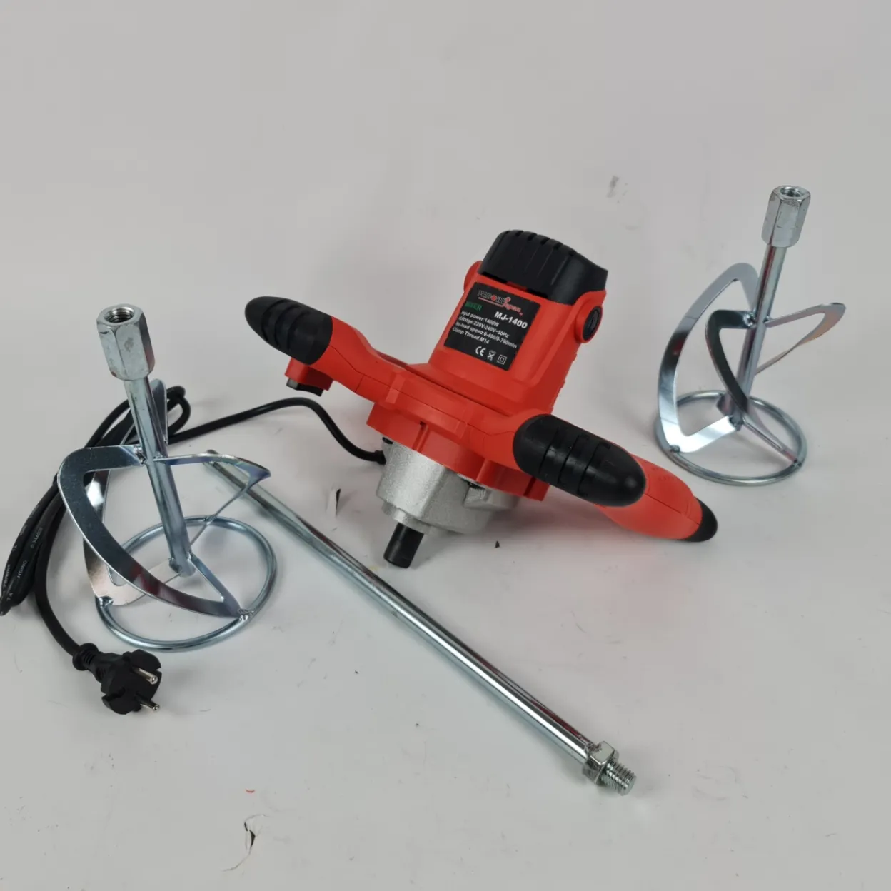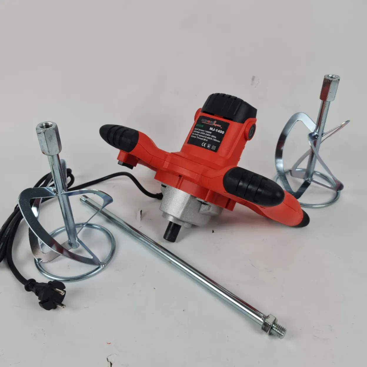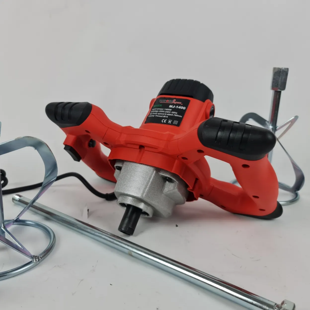 Ergonomski dizajn s dvostrukom ručkom pruža stabilnost i sigurnu kontrolu tijekom rada, čak i kod gušćih smjesa. Robusna konstrukcija i kvalitetni nastavci osiguravaju dugotrajan rad i pouzdanost na gradilištu ili kod kuće.