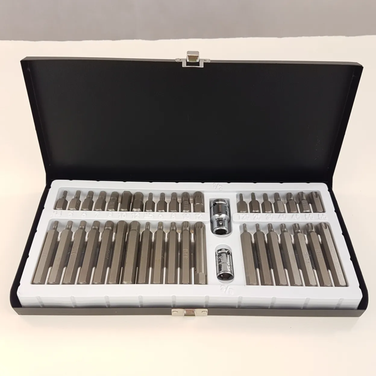 Dolazi u praktičnoj metalnoj kutiji koja omogućuje jednostavno spremanje i organizaciju, tako da su svi bitovi uvijek uredno posloženi i lako dostupni.
