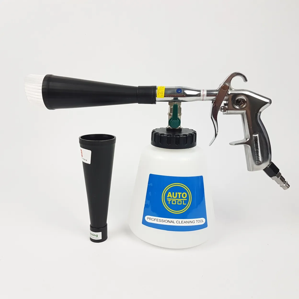 Ovaj profesionalni pištolj za kemijsko čišćenje omogućuje brzo, učinkovito i dubinsko uklanjanje prljavštine uz pomoć komprimiranog zraka i sredstva za čišćenje. Savršen je za auto detailing, ali i za kućnu upotrebu.