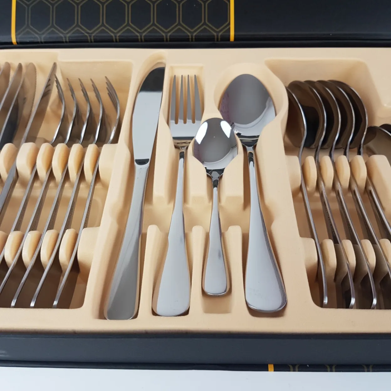 Premium pribor za jelo za 6 osoba savršen je izbor za svakodnevne obroke, ali i posebne prigode 🍽️✨. Elegantnog dizajna i visokog sjaja, ovaj set podiže svaki stol na višu razinu i ostavlja dojam luksuza.