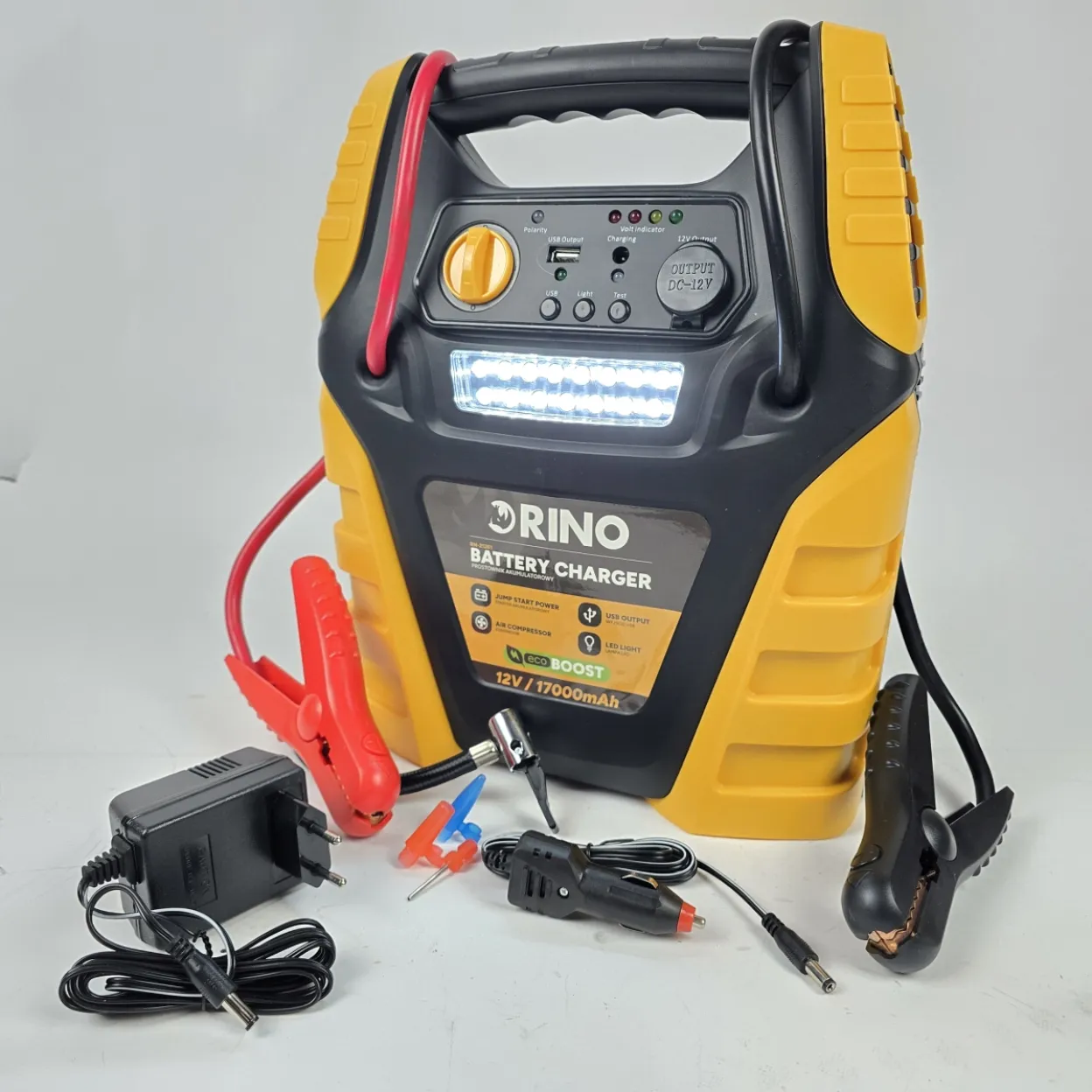 RINO aku punjač i starter s kompresorom – 12V / 17.000 mAh 🔋🚗