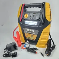 RINO aku punjač i starter sa kompresorom 12V 17000mAh višenamjenski je uređaj koji kombinira pomoćni starter za vozilo, zračni kompresor, USB izlaz i LED svjetlo u jednom kompaktnom kućištu. Namijenjen je za hitne situacije na cesti, kampiranja ili svakodnevnu upotrebu u garaži. Kapacitet od 17000mAh omogućuje pouzdano pokretanje vozila i dodatno napajanje manjih uređaja 🔋🚗.