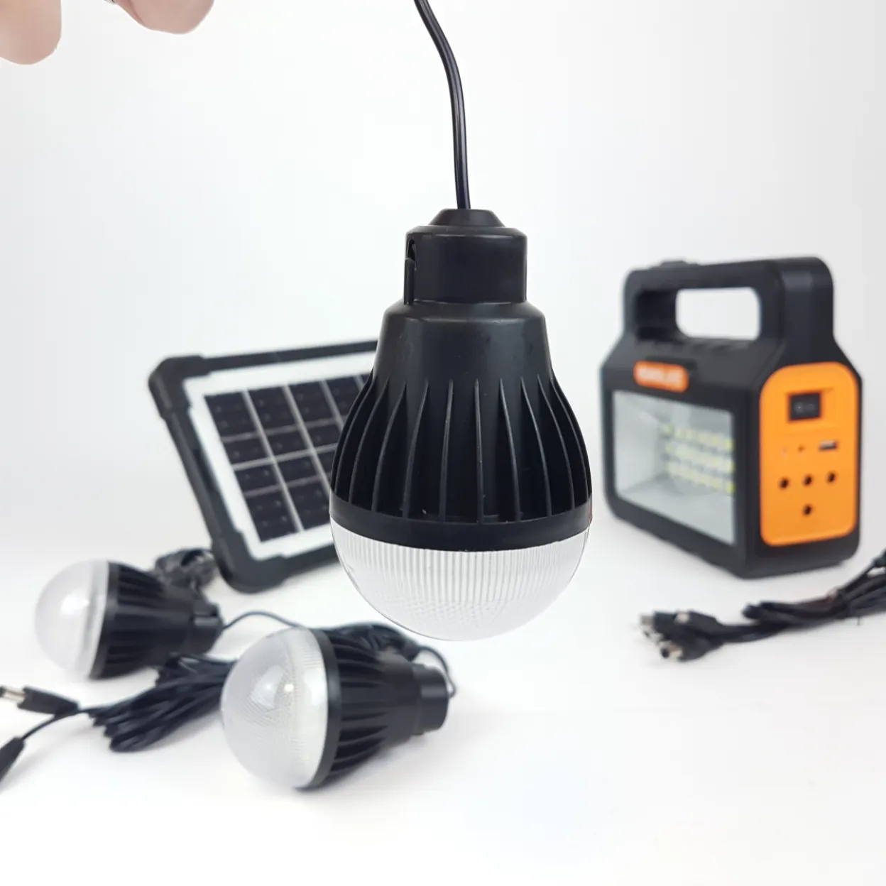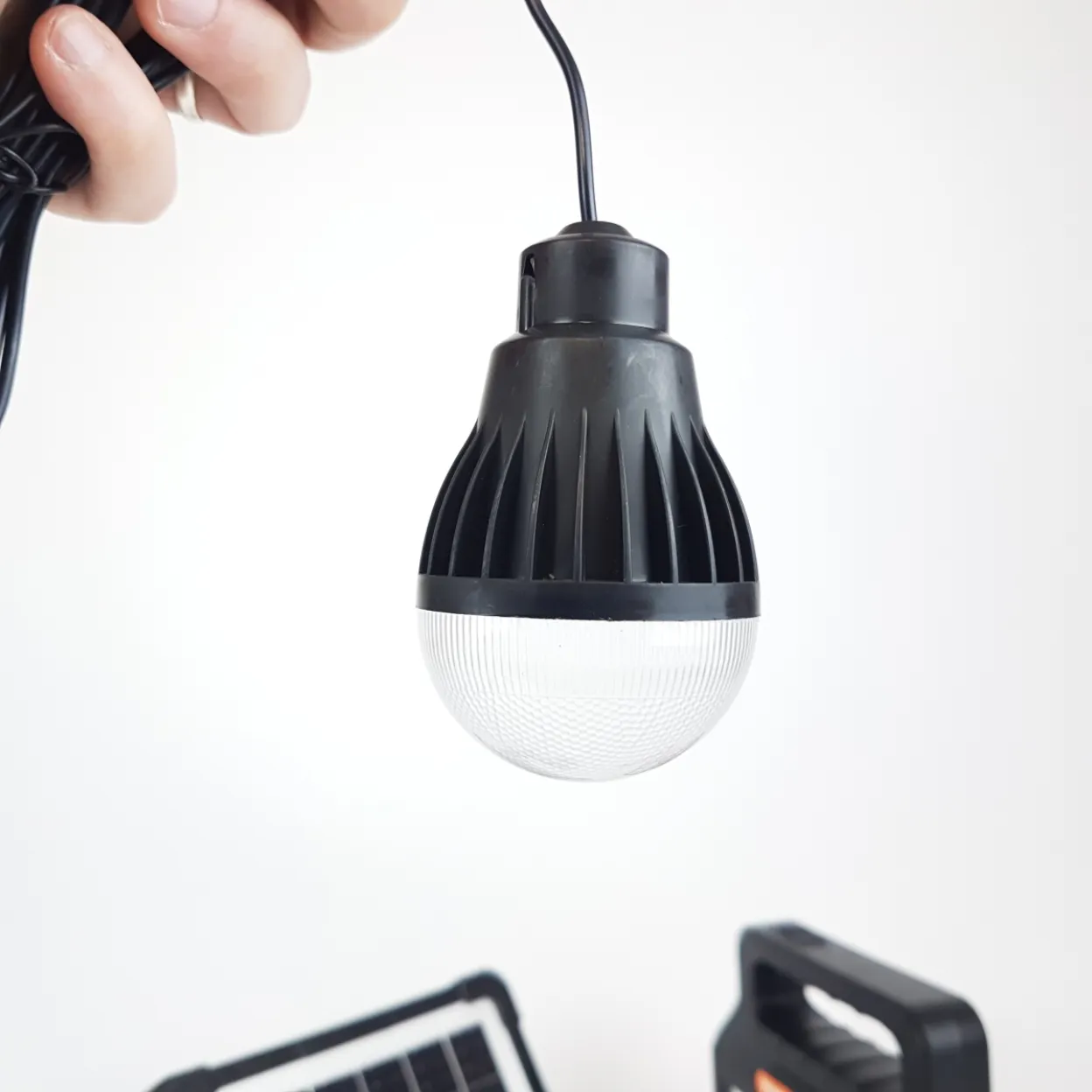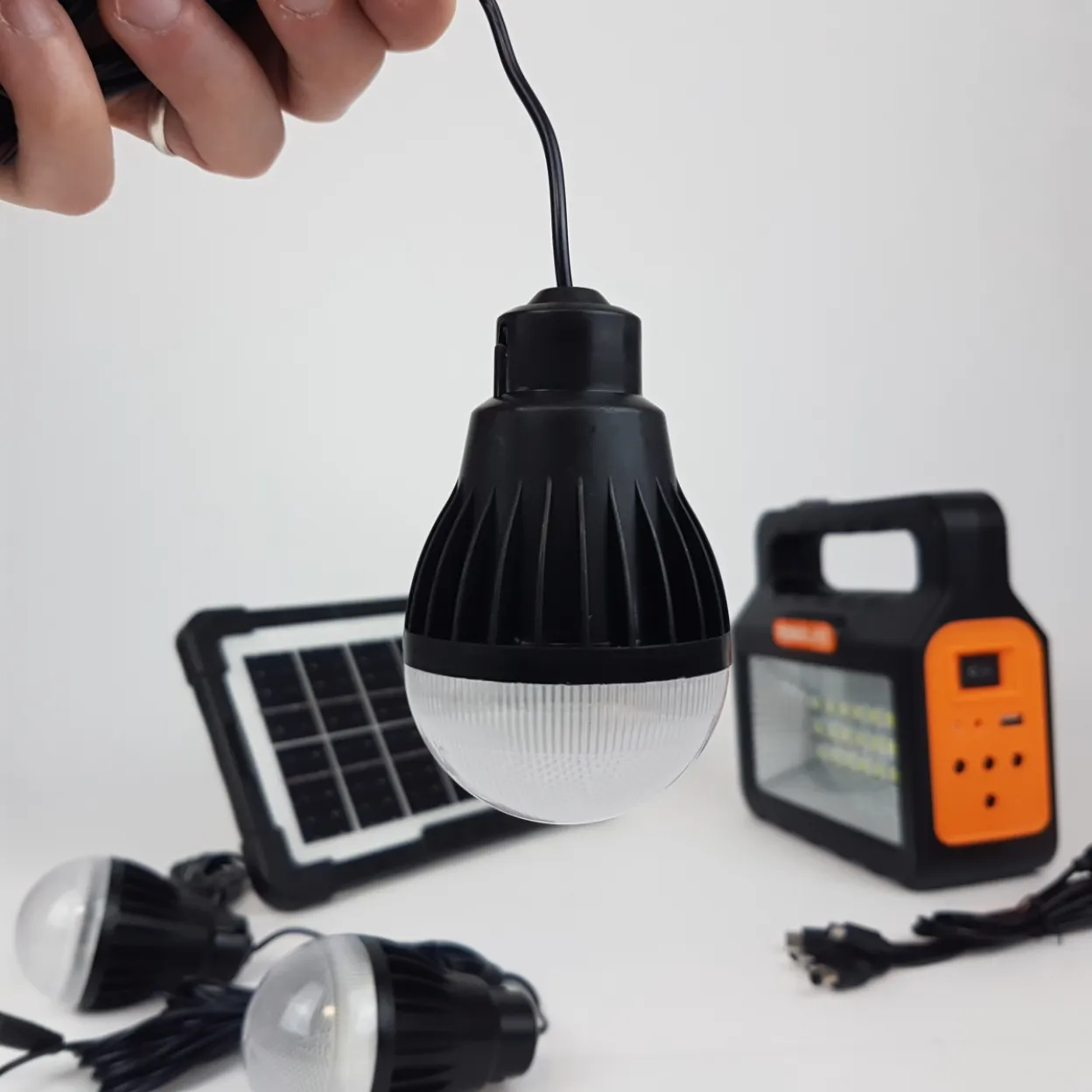 Set uključuje snažnu prijenosnu lampu, solarni panel i čak 3 LED žarulje s dugim kablovima koje omogućuju osvjetljenje više prostorija odjednom. Uz to, uređaj ima USB izlaz za punjenje mobitela i drugih uređaja.