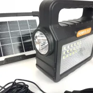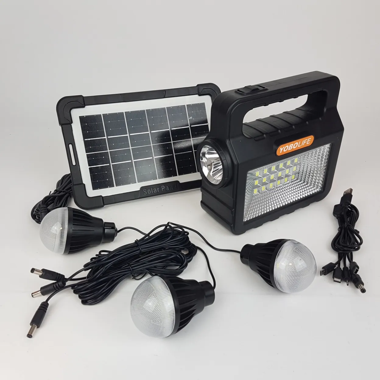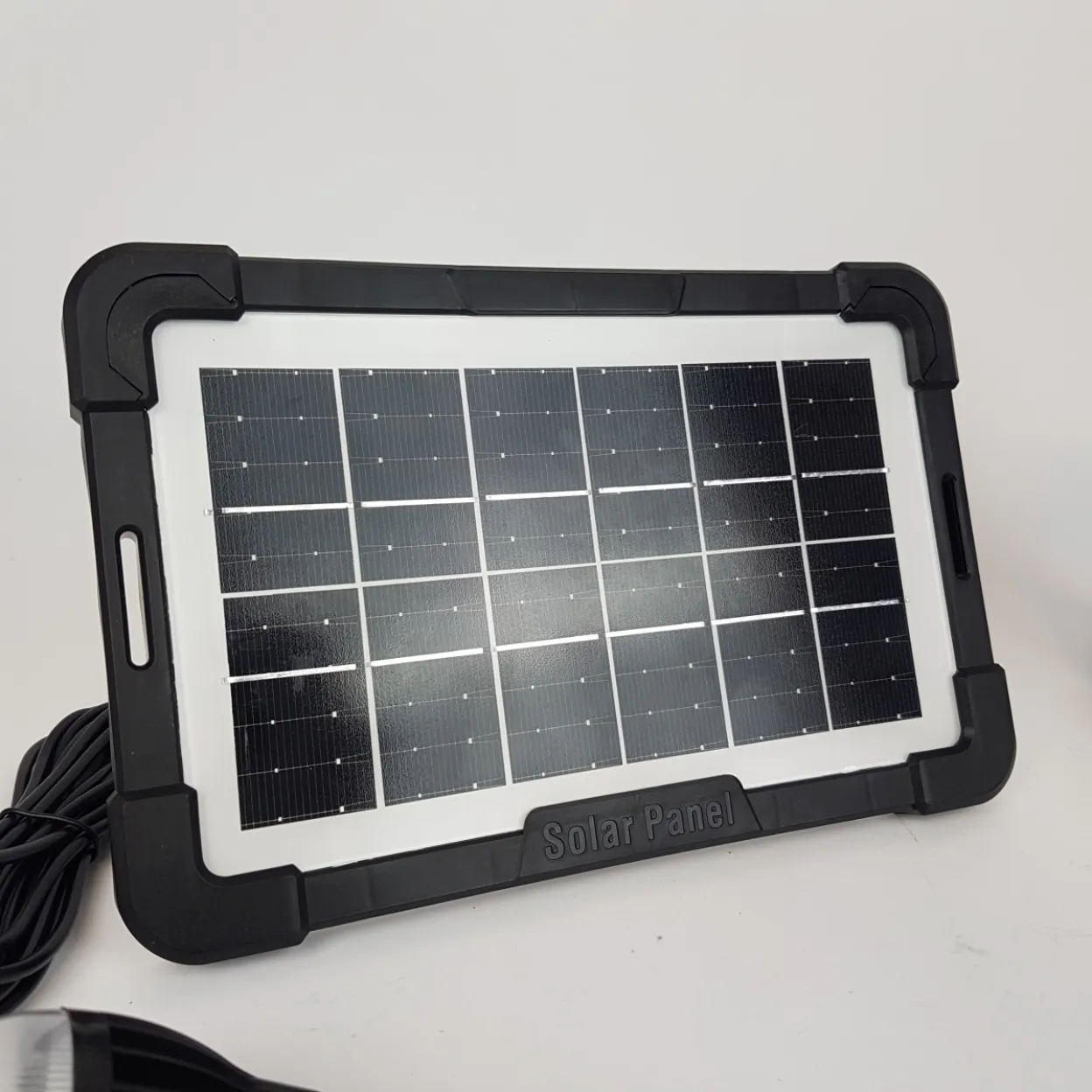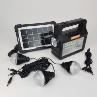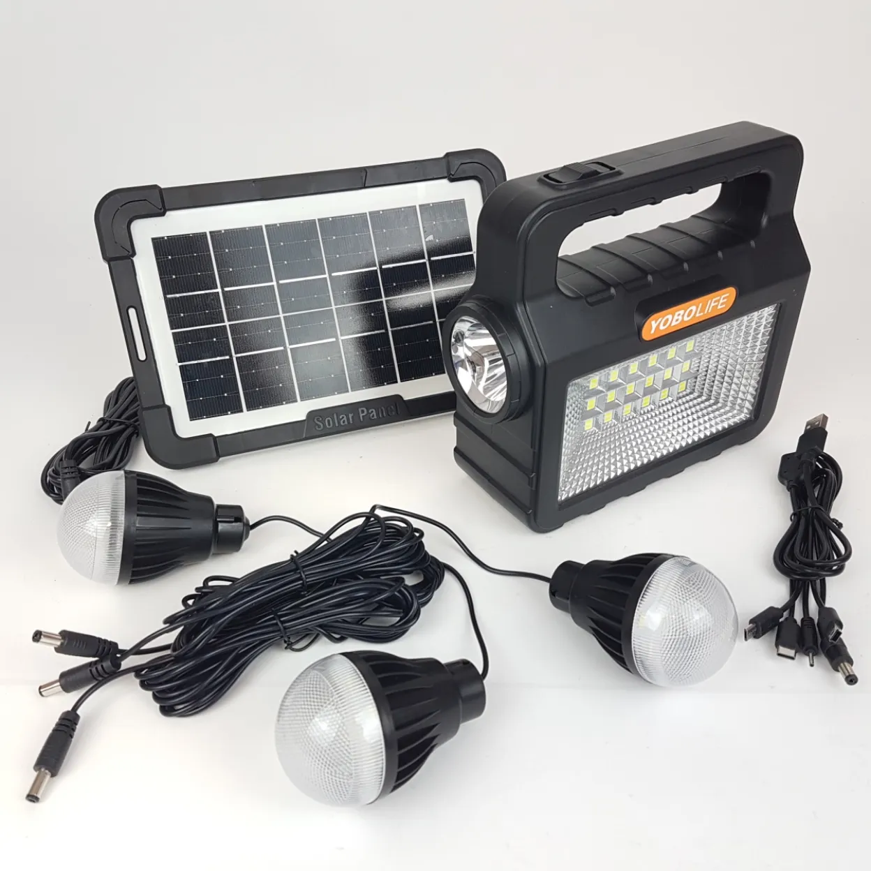 Set uključuje snažnu prijenosnu lampu, solarni panel i čak 3 LED žarulje s dugim kablovima koje omogućuju osvjetljenje više prostorija odjednom. Uz to, uređaj ima USB izlaz za punjenje mobitela i drugih uređaja.