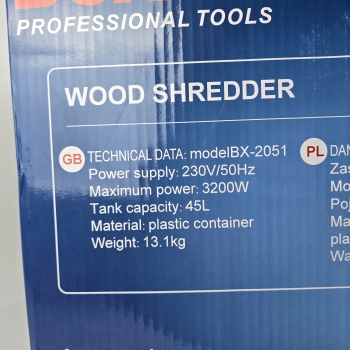 - Motor snage 3200W omogućuje sjeckalici da obrađuje deblje grane bez poteškoća, osiguravajući brzi i učinkoviti rad.